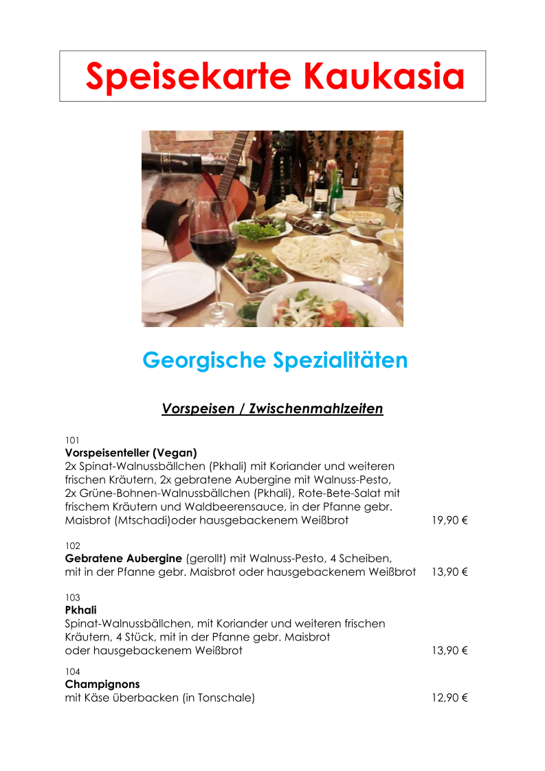 Welcome to Restaurant & Bistro Kaukasia, a hidden gem nestled in the heart of Cologne at Clever Str. 2. This delightful dining spot offers an authentic taste of Georgian cuisine, a culinary experience that promises to transport you straight to the lush landscapes of Georgia with every bite.